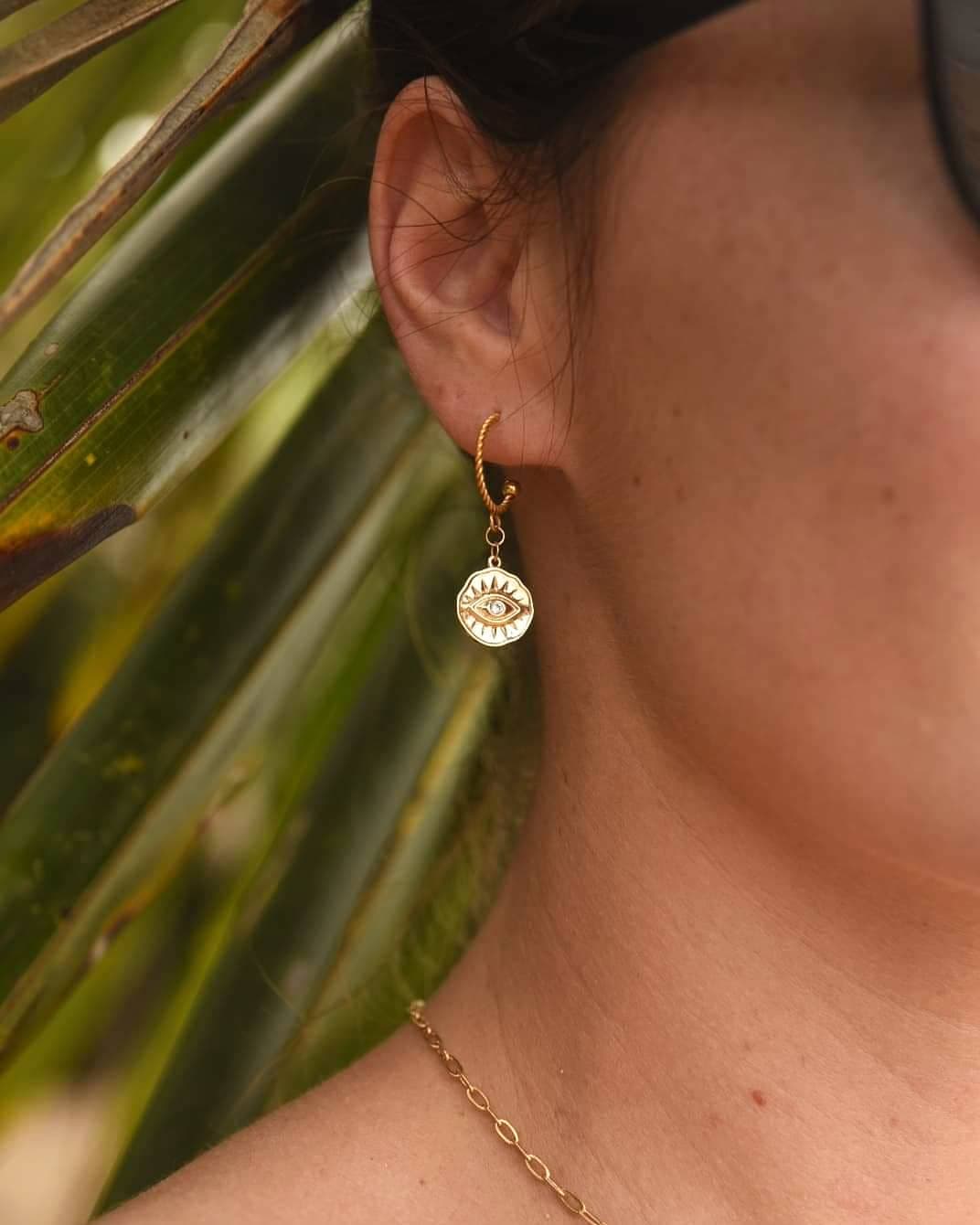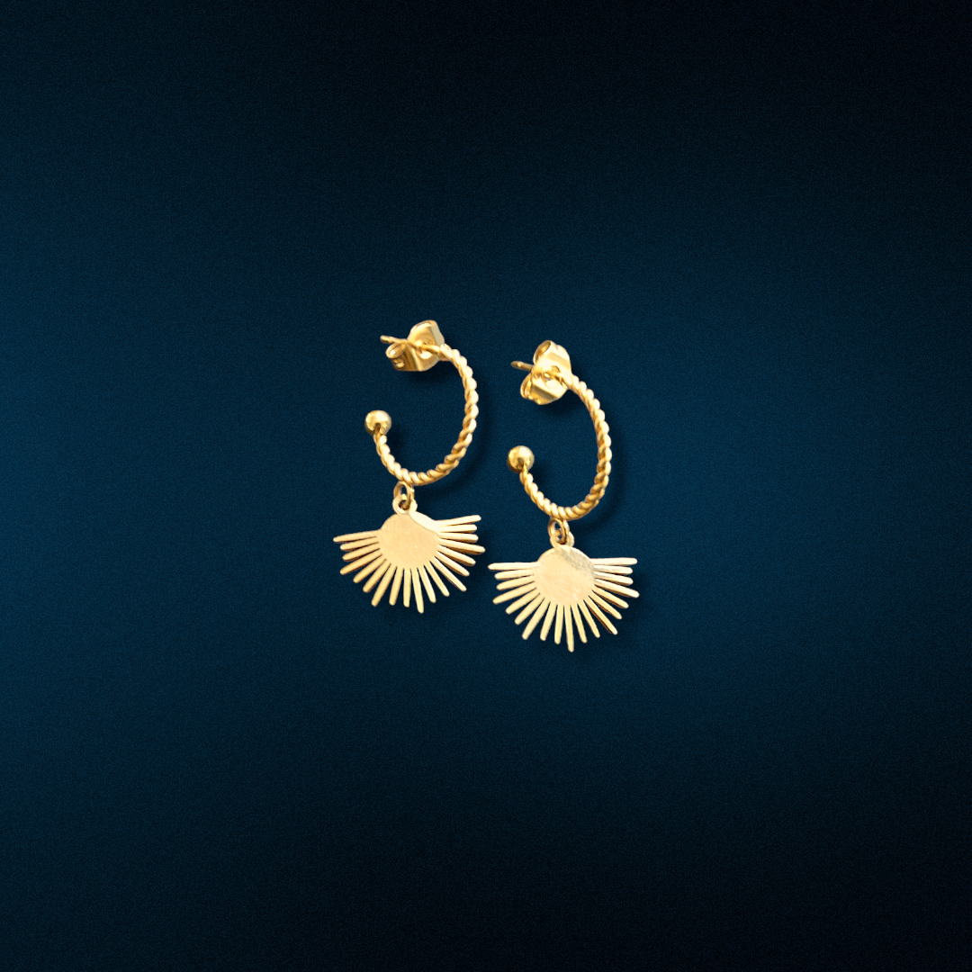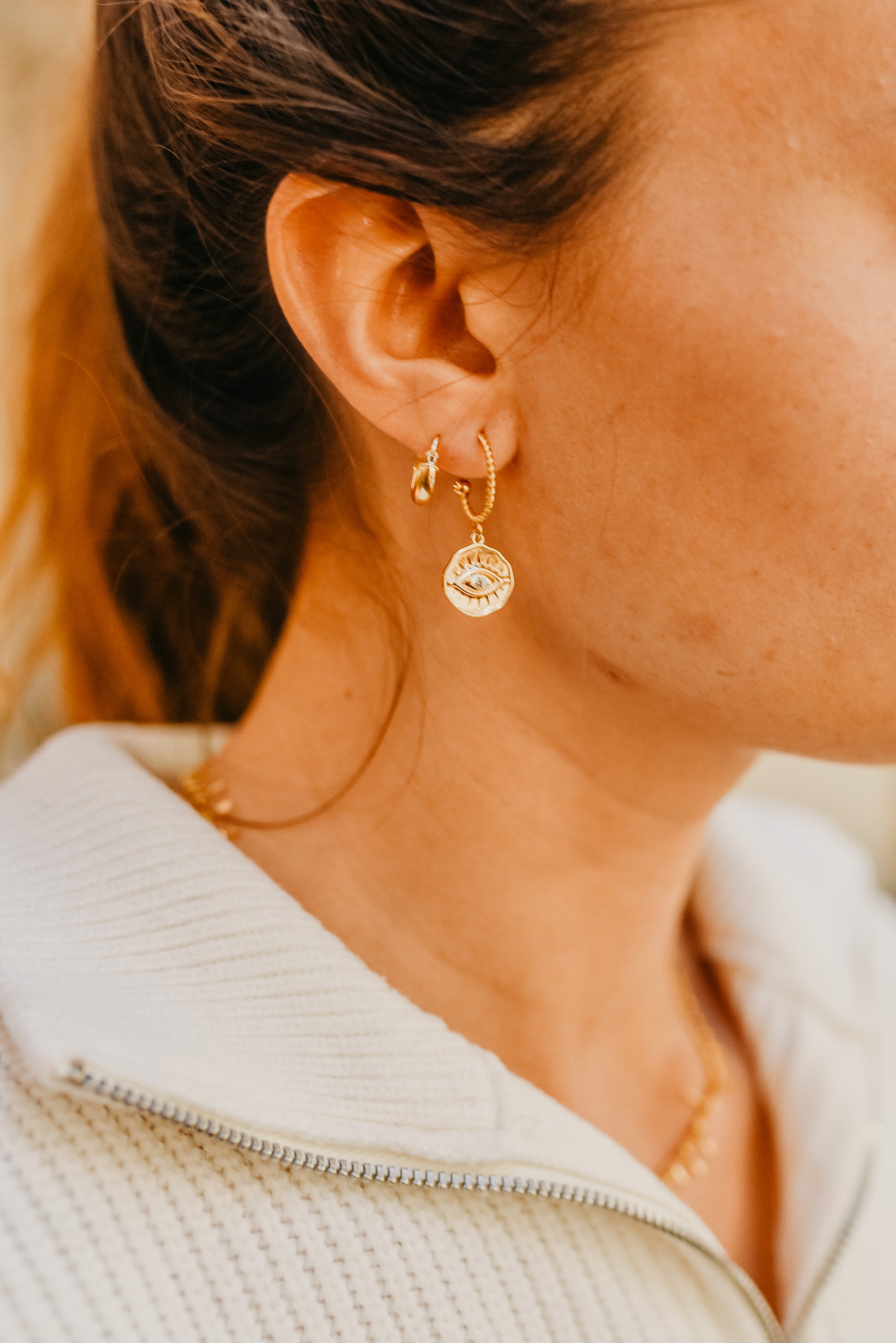 Boucles d'oreilles dormeuses avec pendentifs en plaqué or à porter par paire ou dépareillées pour un style bohème.