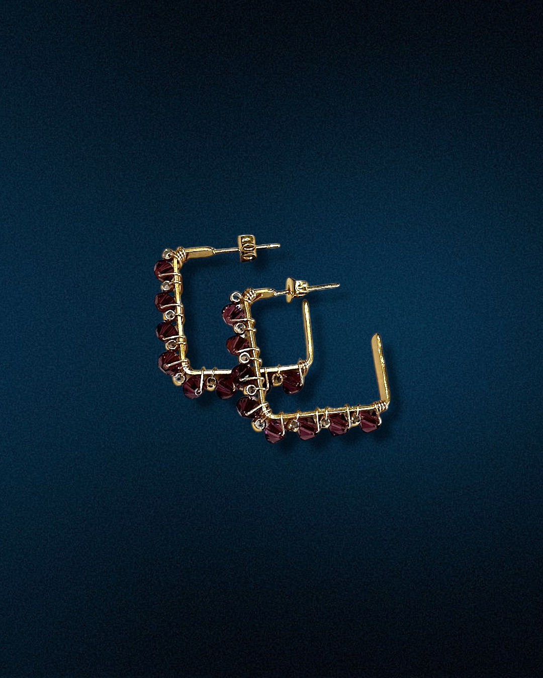Créoles carrées en acier inoxydable avec perles Swarovski.