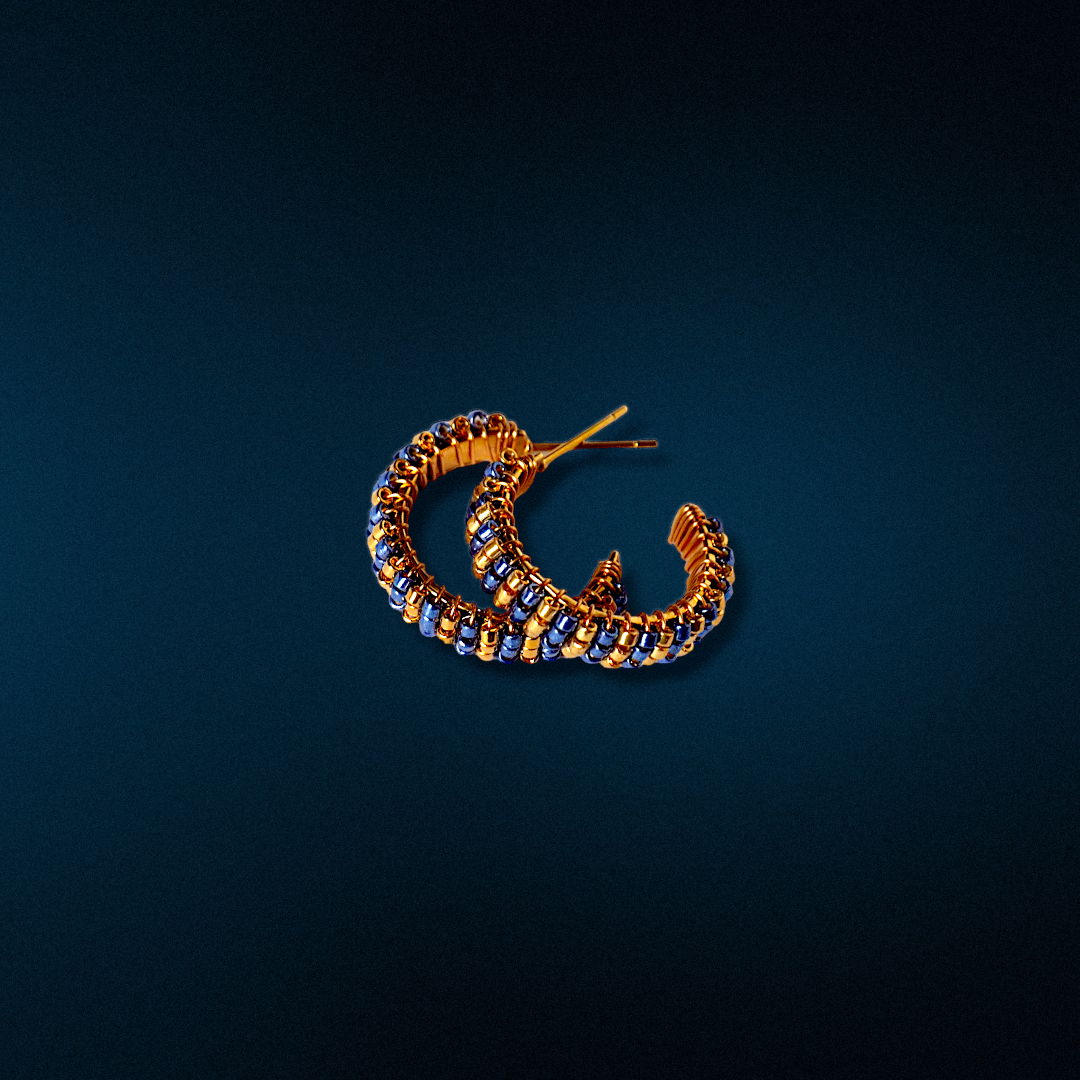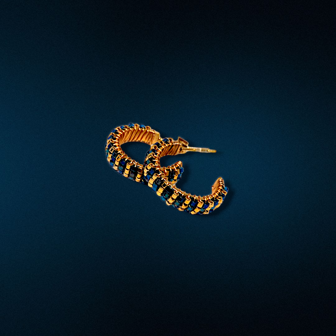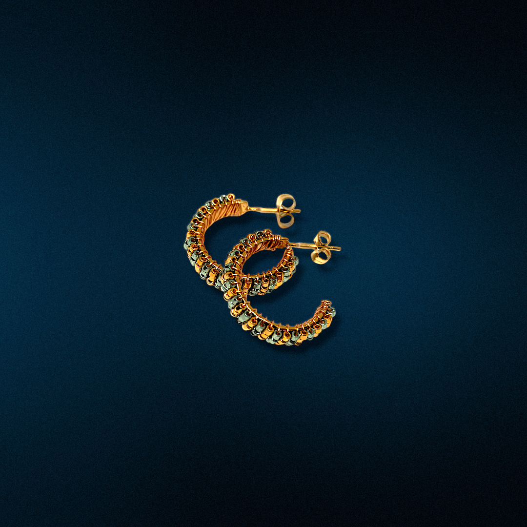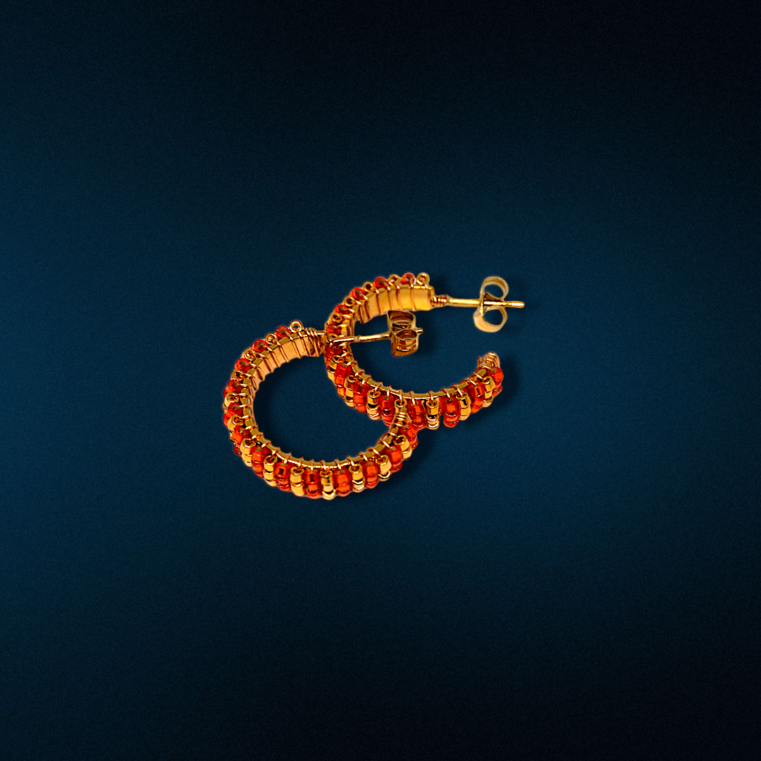 Créoles de taille 20mm en acier inoxydable avec perles miyuki delica colorées et perles miyuki en plaqué or.
