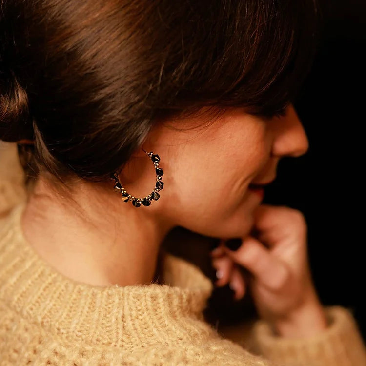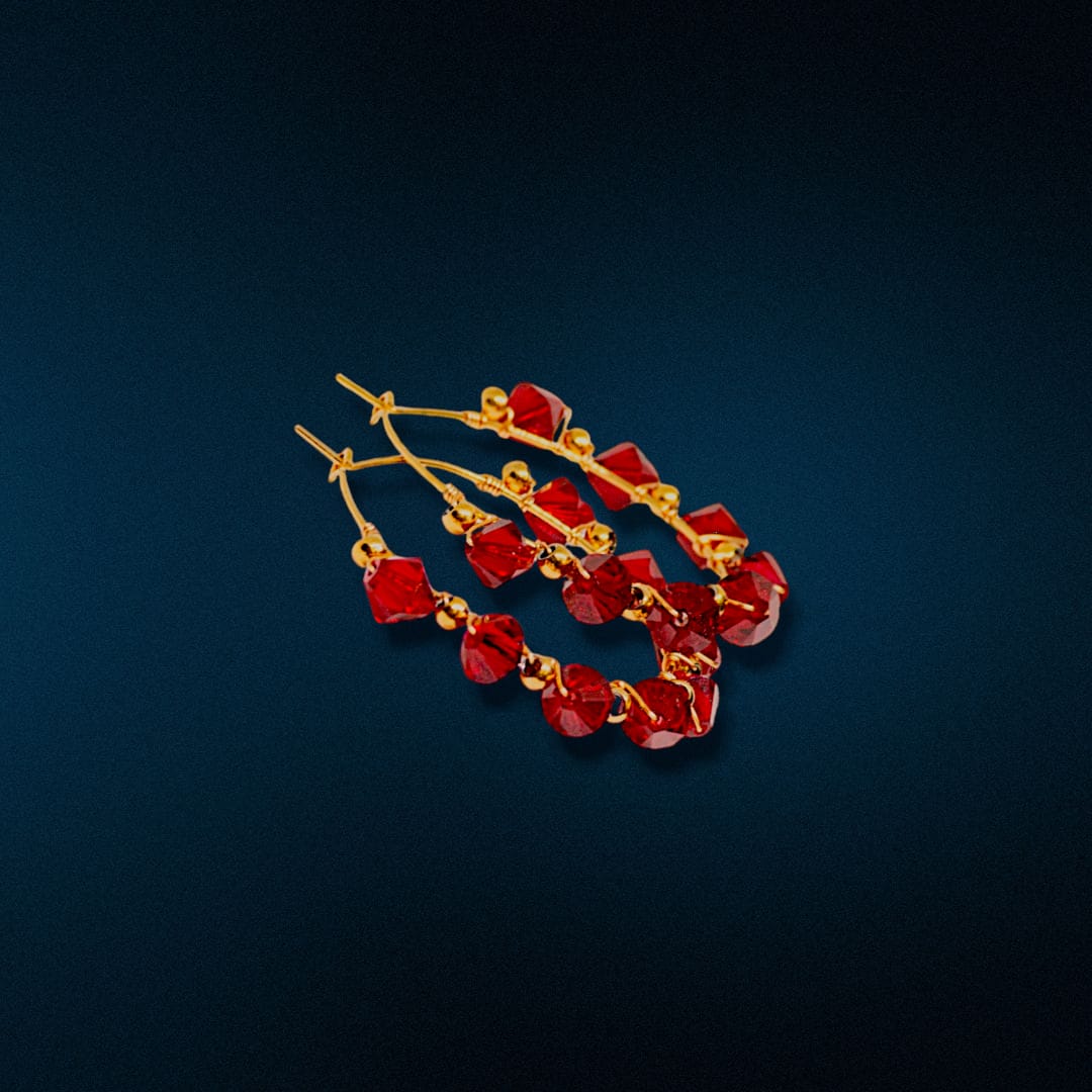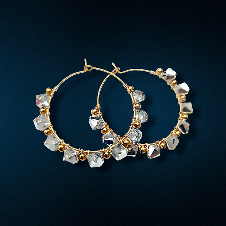 Boucles d'oreilles créoles en acier inoxydable 35mm et perles swarovski 8mm.