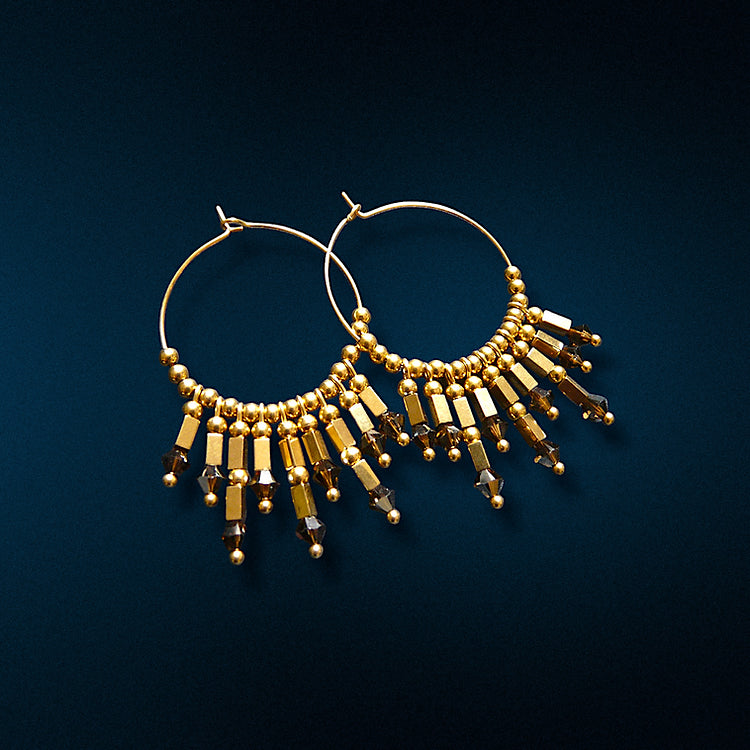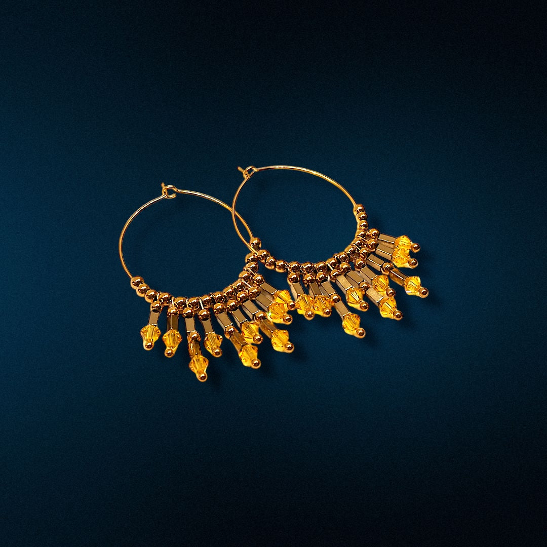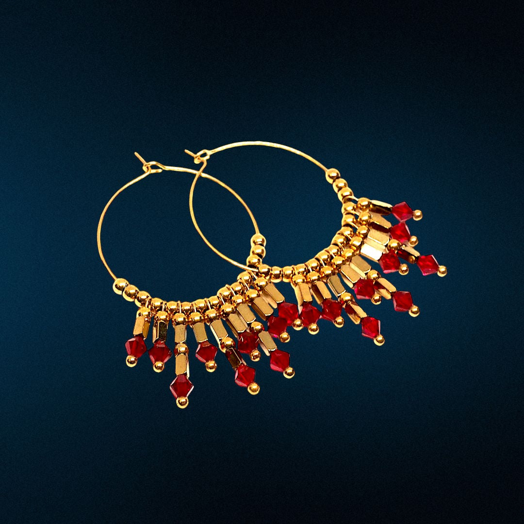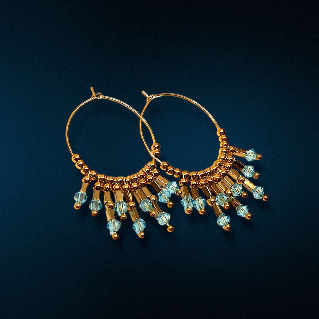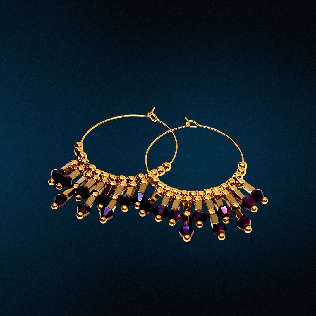 Boucles d'oreilles créoles en acier inoxydable 30 mm avec tubes en acier perles swarovski. Disponibles en plusieurs couleurs.