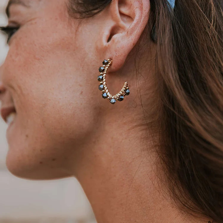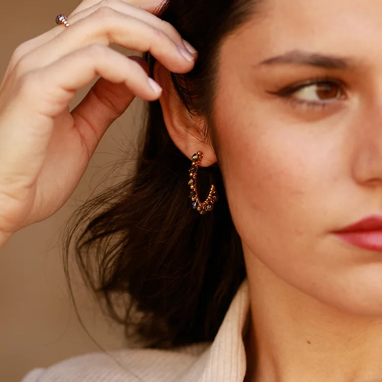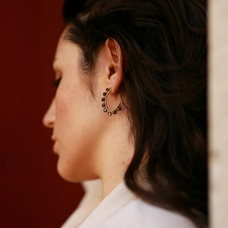 Boucles d'oreilles en acier inoxydable et perles Swarovski. Disponibles en plusieurs couleurs.