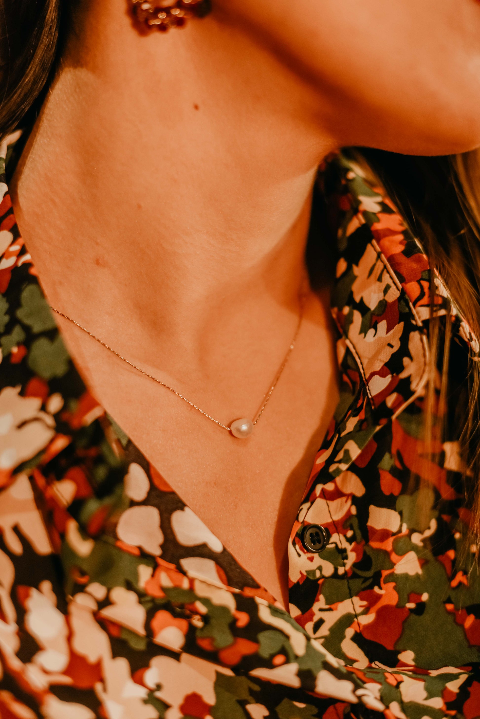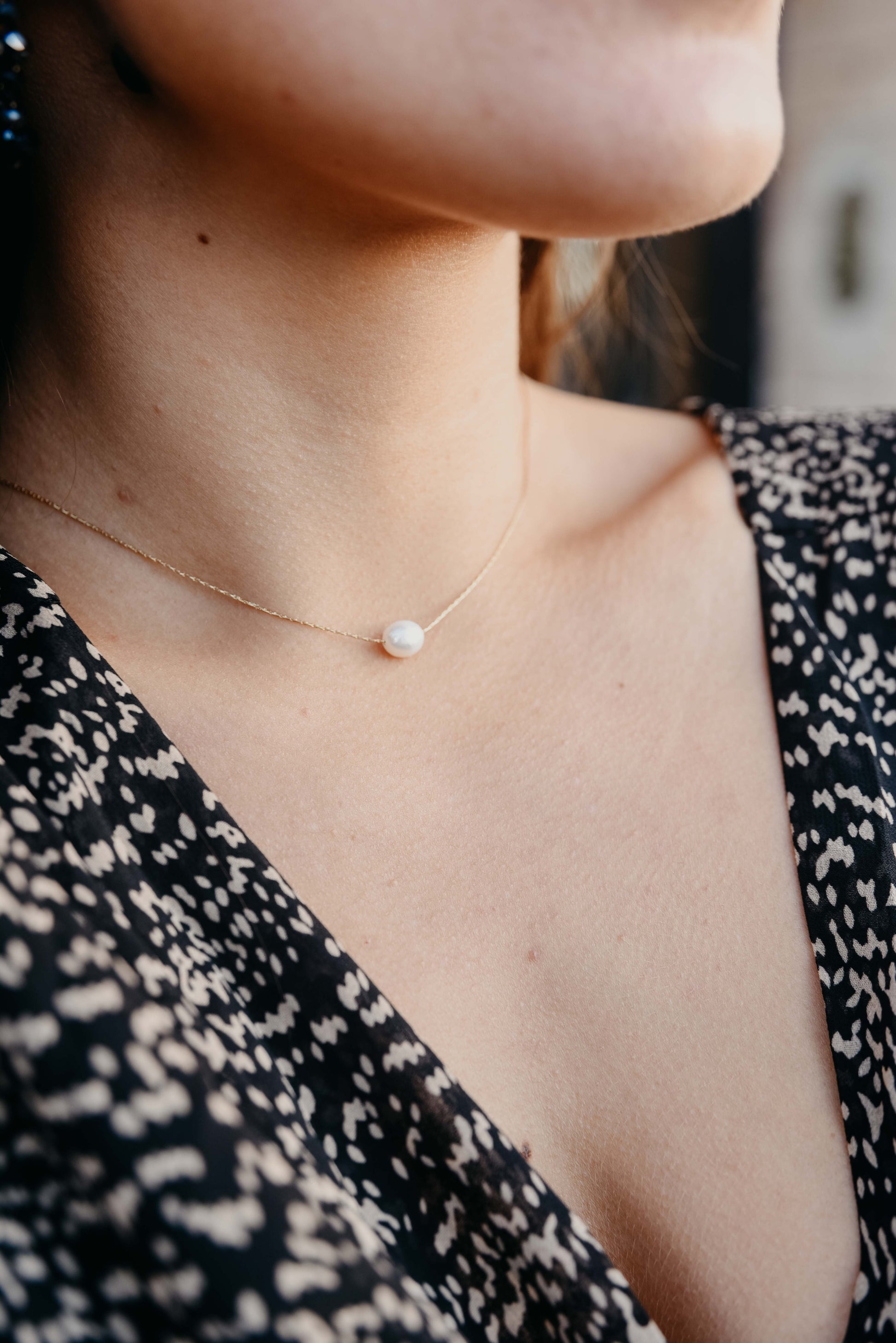Collier ras de cou ajustable en acier inoxydable avec perle d'eau douce en version argent ou doré.