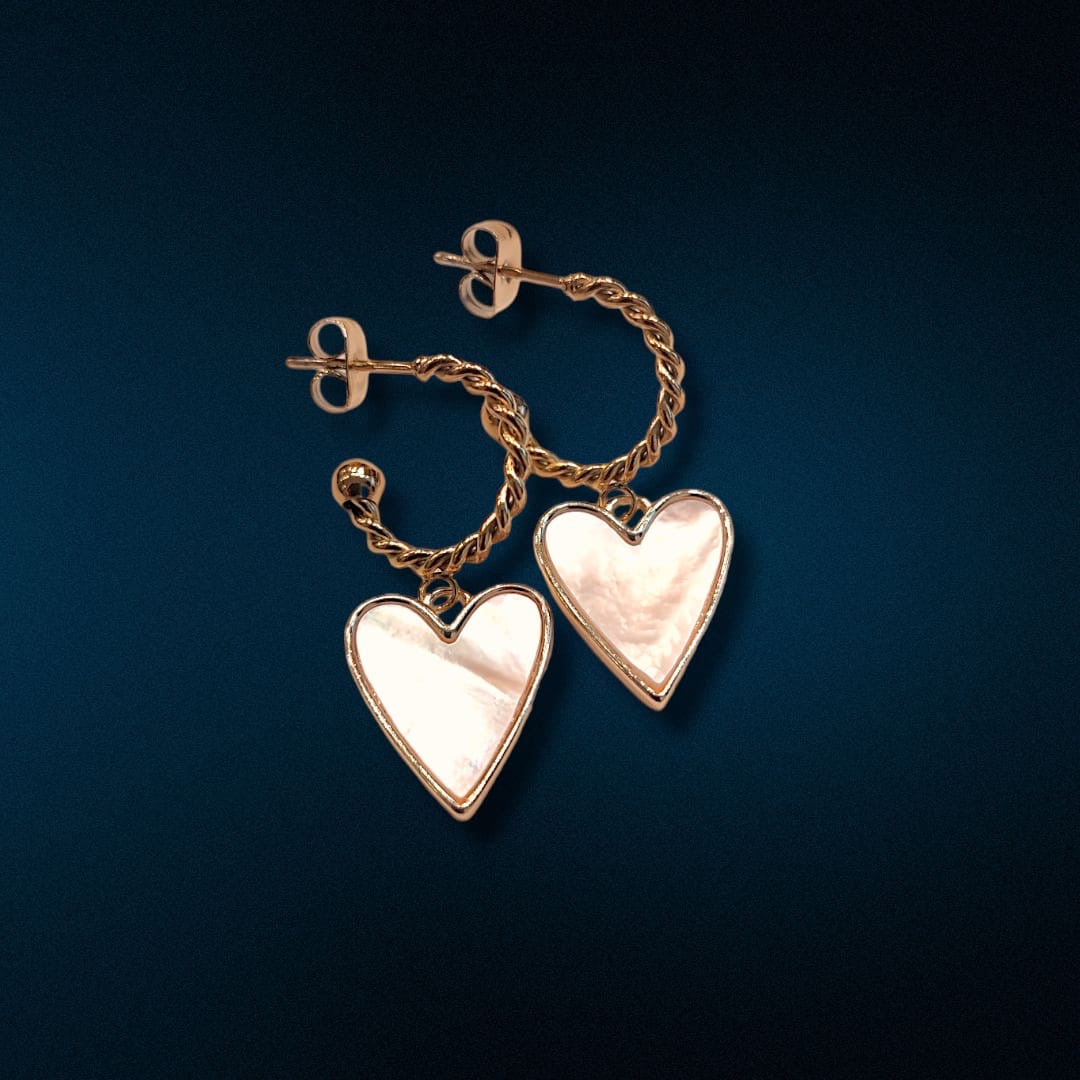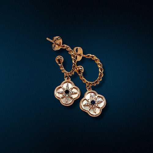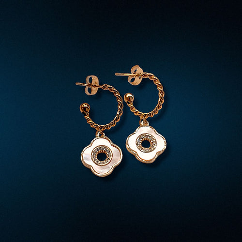 Dormeuses en nacre, plusieurs modèles disponibles : coeur, trèfle, trèfle avec petits strass bleu nuit. Métal : acier inoxydable | conçu pour durer