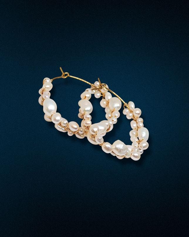 Créoles en 30mm dorées avec 6 différents types de perles d'eau douces naturelles