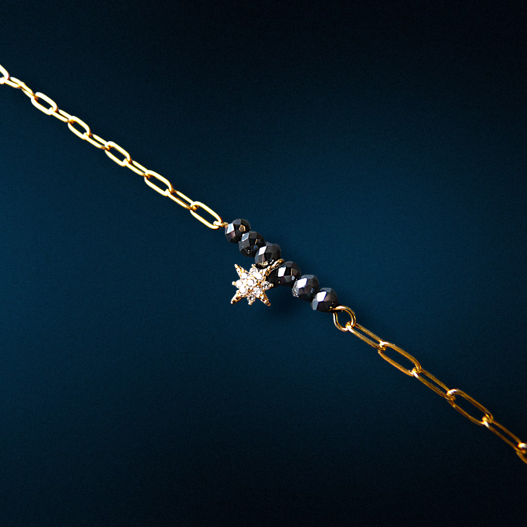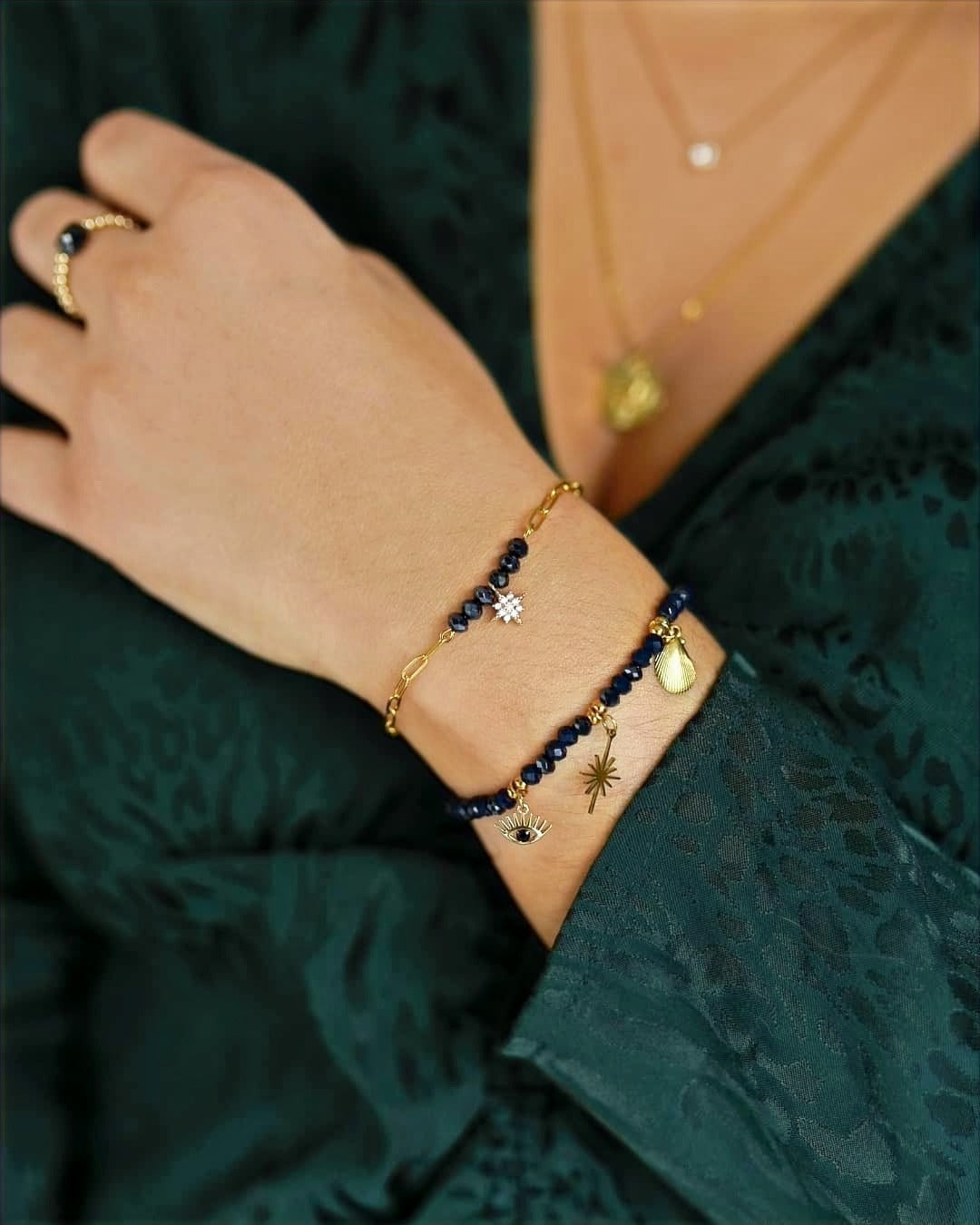 Bracelet en maille trombone en acier inoxydable avec pendentif swaroski.