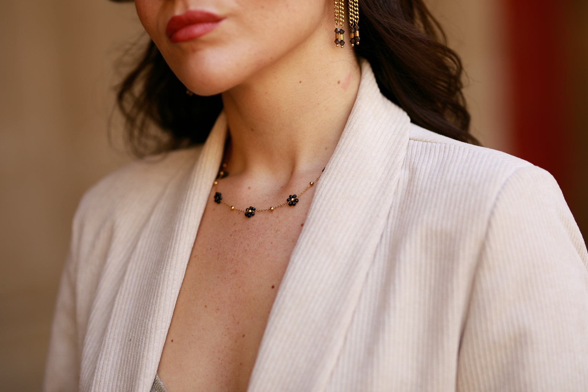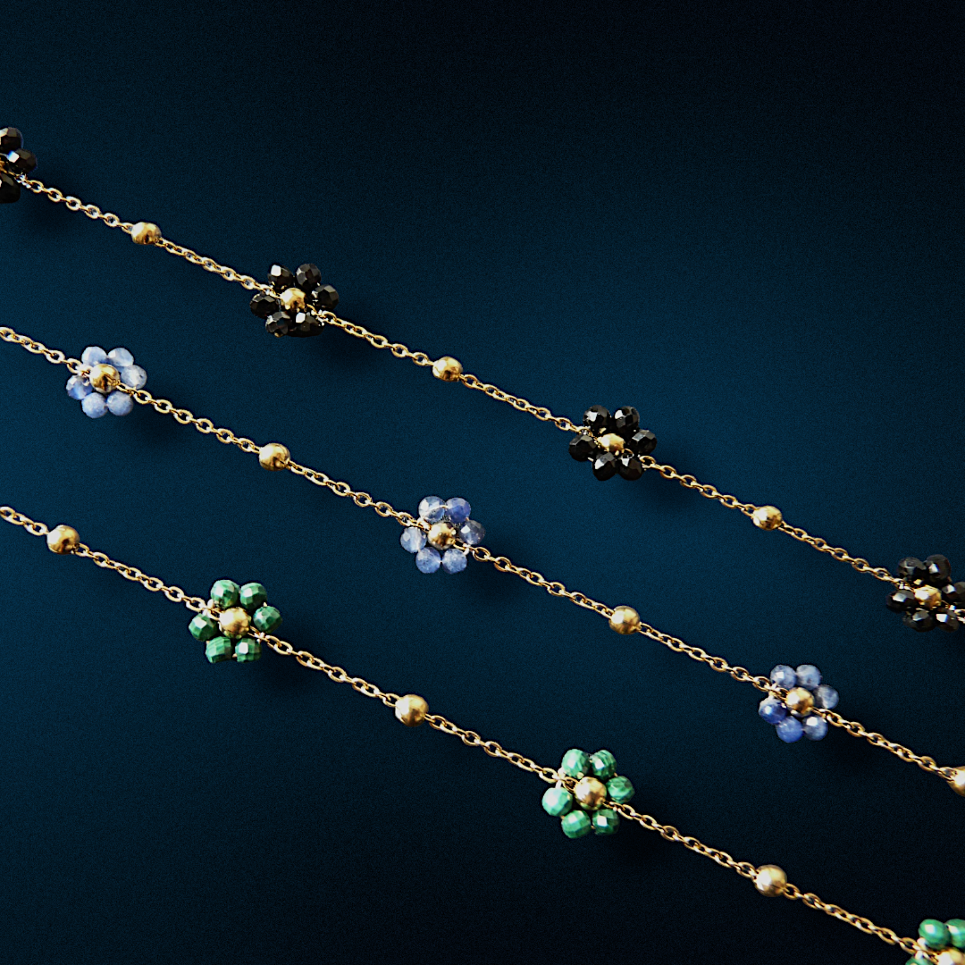 Collier en acier inoxydable de 42 cm avec chaîne réglable avec pierres semi-précieuses. Disponible en plusieurs couleurs.