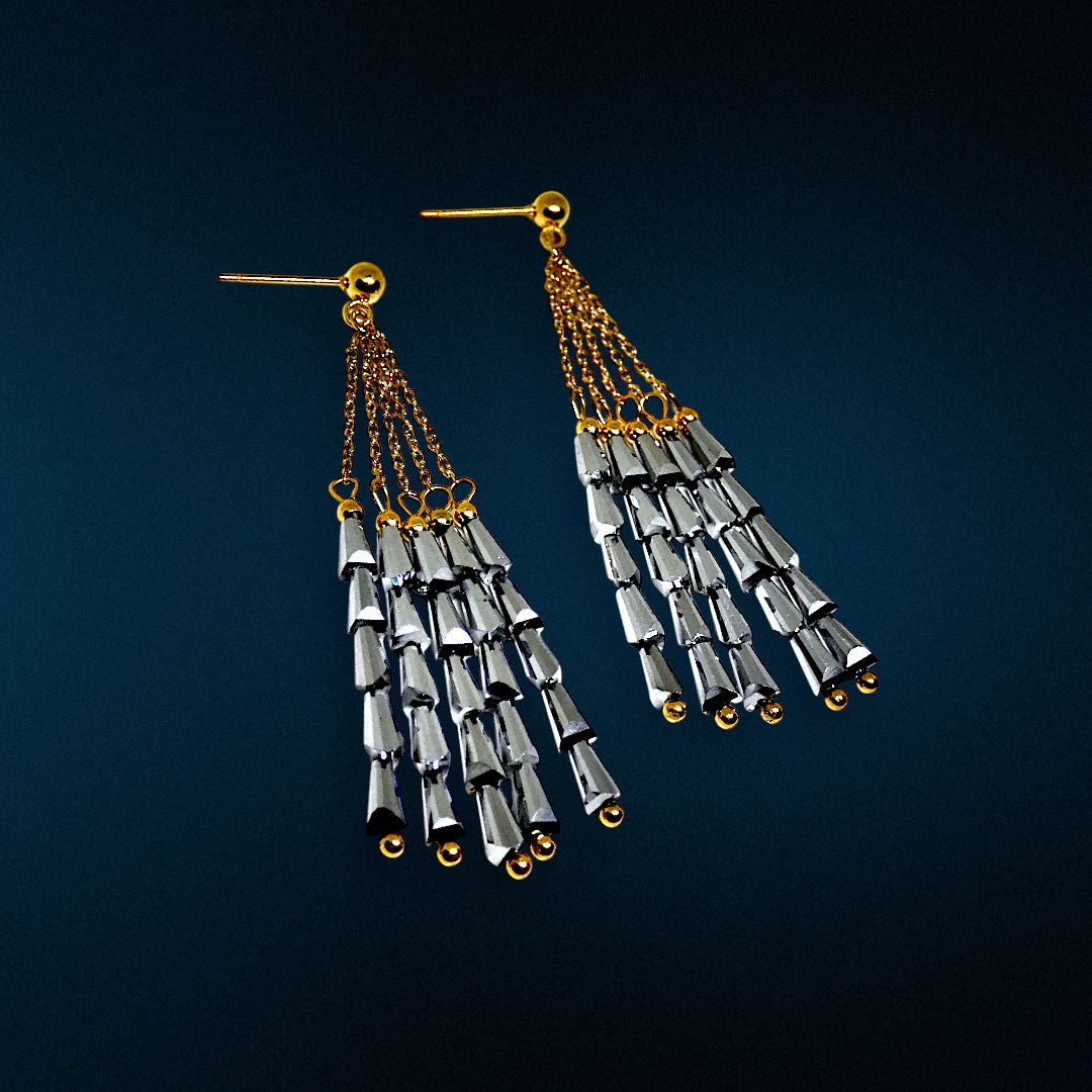 Boucles d'oreilles pendantes, avec perles métalliques ✨