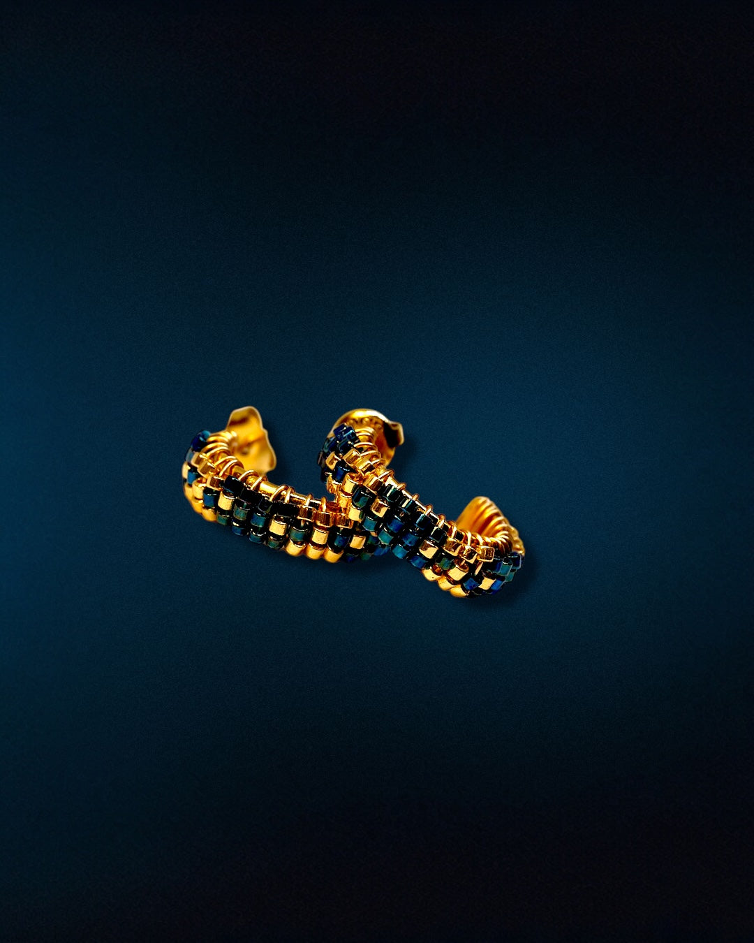 Créoles de taille 15mm en acier inoxydable avec perles miyuki delica colorées et perles miyuki en plaqué or.